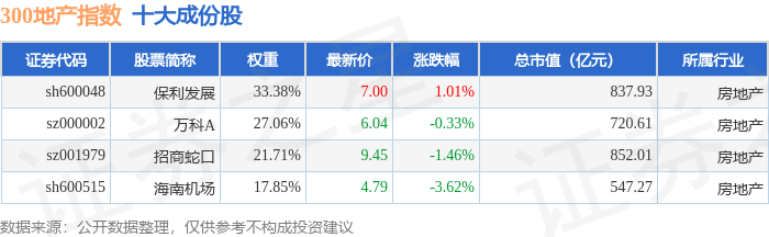 证券之星消息,11月24日,300地产(000952)指数报收于2749.41点,跌0.76%,成交30.37亿元,换手率1.25%。当日该指数成份股中,上涨的有1家,保利发展以1.01%的涨幅领涨,下跌的有3家,海南机场以3.62%的跌幅领跌。