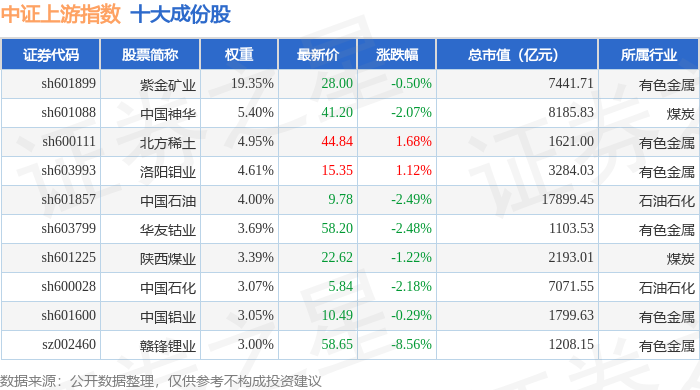 证券之星消息,11月24日,中证上游(000961)指数报收于4434.93点,跌1.07%,成交652.87亿元,换手率0.67%。当日该指数成份股中,上涨的有17家,东阳光以4.92%的涨幅领涨,下跌的有32家,赣锋锂业以8.56%的跌幅领跌。