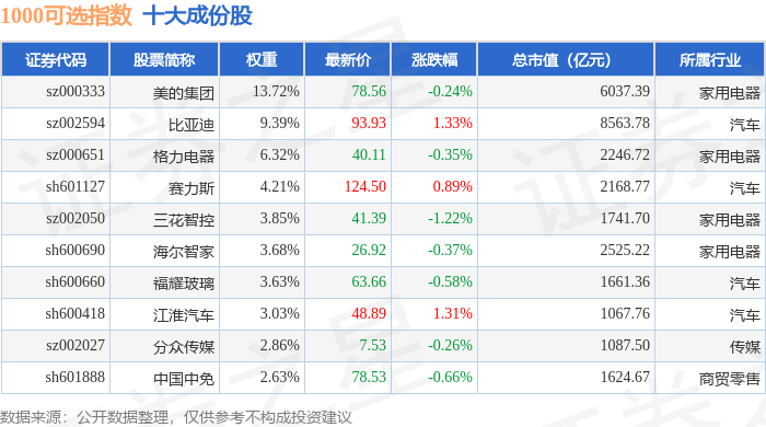 1000可选(399384)指数十大成份股详情如下: