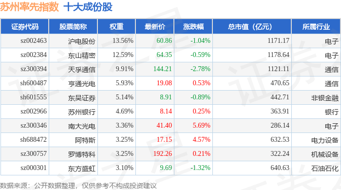 苏州率先(399410)指数十大成份股详情如下: