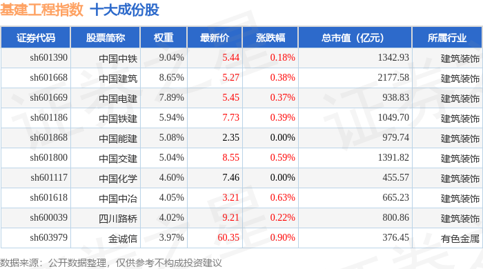 基建工程(399995)指数十大成份股详情如下: