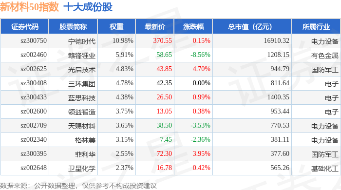 资金流向方面,新材料50(970042)指数成份股当日主力资金净流出合计12.19亿元,游资资金净流出合计5.03亿元,散户资金净流入合计17.22亿元。成份股资金流向详情见下表: