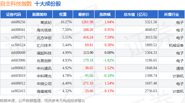 证券之星消息,11月24日,自主科技(980033)指数报收于8613.91点,涨1.56%,成交652.35亿元,换手率1.52%。当日该指数成份股中,上涨的有45家,北方华创以7.59%的涨幅领涨,下跌的有4家,兆易创新以1.82%的跌幅领跌。