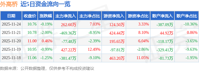 11月24日的资金流向数据方面,主力资金净流入262.6万元,占总成交额7.03%,游资资金净流入124.5万元,占总成交额3.33%,散户资金净流出387.09万元,占总成交额10.36%。