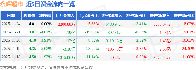 证券之星消息,截至2025年11月24日收盘,永辉超市(601933)报收于4.01元,上涨0.0%,换手率1.13%,成交量102.32万手,成交额4.09亿元。