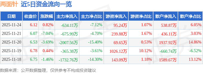 11月24日的资金流向数据方面,主力资金净流出634.11万元,占总成交额7.12%,游资资金净流入95.24万元,占总成交额1.07%,散户资金净流入538.87万元,占总成交额6.05%。