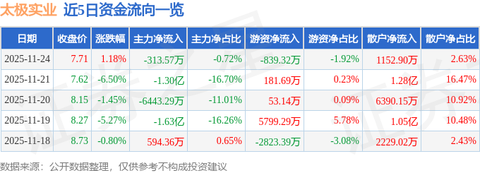 证券之星消息,截至2025年11月24日收盘,太极实业(600667)报收于7.71元,上涨1.18%,换手率2.73%,成交量57.04万手,成交额4.38亿元。