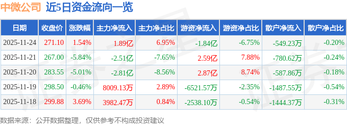 11月24日的资金流向数据方面,主力资金净流入1.89亿元,占总成交额6.95%,游资资金净流出1.84亿元,占总成交额6.75%,散户资金净流出549.23万元,占总成交额0.2%。