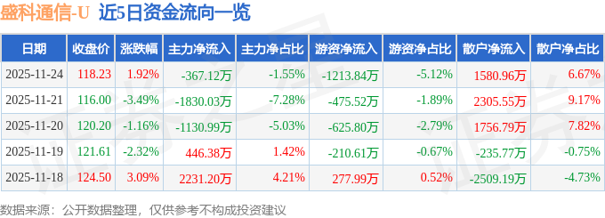 证券之星消息,截至2025年11月24日收盘,盛科通信(688702)报收于118.23元,上涨1.92%,换手率0.99%,成交量2.0万手,成交额2.37亿元。