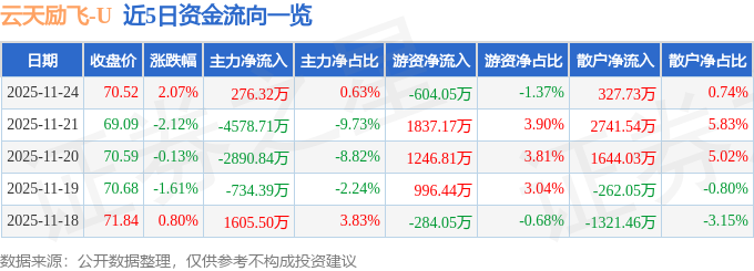 证券之星消息,截至2025年11月24日收盘,云天励飞(688343)报收于70.52元,上涨2.07%,换手率2.4%,成交量6.33万手,成交额4.42亿元。