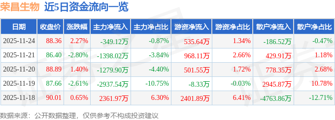 证券之星消息,截至2025年11月24日收盘,荣昌生物(688331)报收于88.36元,上涨2.27%,换手率2.82%,成交量4.58万手,成交额4.01亿元。