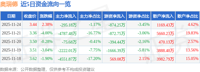 证券之星消息,截至2025年11月24日收盘,奥瑞德(600666)报收于3.44元,上涨2.38%,换手率3.06%,成交量74.02万手,成交额2.53亿元。