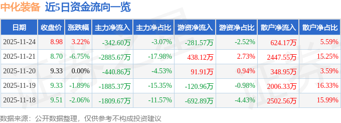 证券之星消息,截至2025年11月24日收盘,中化装备(600579)报收于8.98元,上涨3.22%,换手率2.52%,成交量12.44万手,成交额1.12亿元。