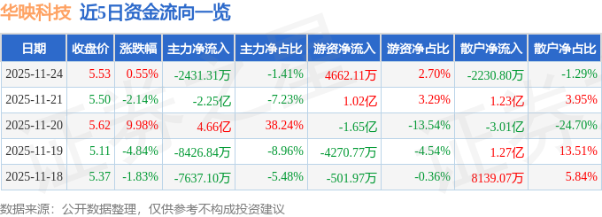 证券之星消息,截至2025年11月24日收盘,华映科技(000536)报收于5.53元,上涨0.55%,换手率11.46%,成交量316.64万手,成交额17.29亿元。