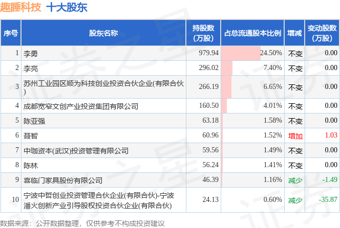 根据趣睡科技2025年三季报公布的十大股东详情如下: