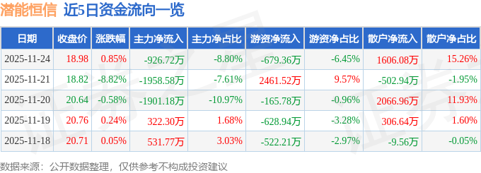 证券之星消息,截至2025年11月24日收盘,潜能恒信(300191)报收于18.98元,上涨0.85%,换手率2.53%,成交量5.59万手,成交额1.05亿元。
