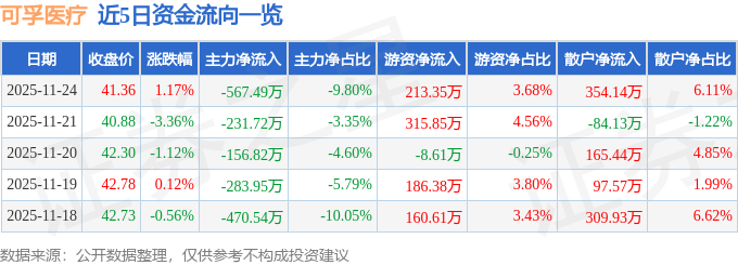 证券之星消息,截至2025年11月24日收盘,可孚医疗(301087)报收于41.36元,上涨1.17%,换手率0.72%,成交量1.4万手,成交额5792.63万元。