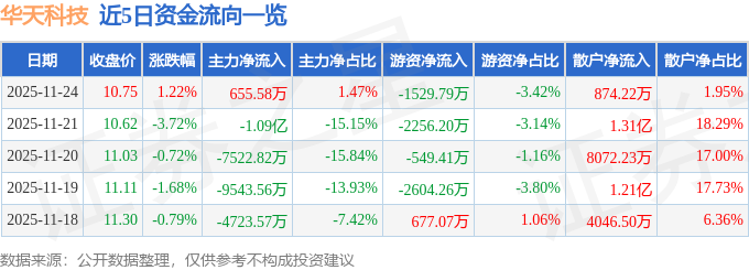 证券之星消息,截至2025年11月24日收盘,华天科技(002185)报收于10.75元,上涨1.22%,换手率1.29%,成交量41.9万手,成交额4.47亿元。