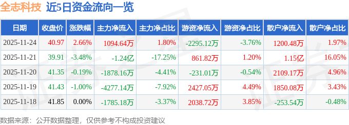 11月24日的资金流向数据方面,主力资金净流入1094.64万元,占总成交额1.8%,游资资金净流出2295.12万元,占总成交额3.76%,散户资金净流入1200.48万元,占总成交额1.97%。