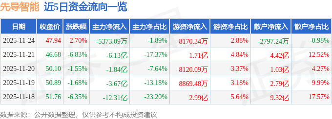 11月24日的资金流向数据方面,主力资金净流出5373.09万元,占总成交额1.89%,游资资金净流入8170.34万元,占总成交额2.88%,散户资金净流出2797.24万元,占总成交额0.98%。