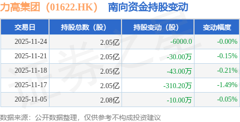 证券之星消息,11月24日南向资金减持6000.0股力高集团(01622.HK)。近5个交易日中,获南向资金减持的有5天,累计净减持393.8万股。近20个交易日中,获南向资金减持的有20天,累计净减持1038.2万股。截至目前,南向资金持有力高集团(01622.HK)2.05亿股,占公司已发行普通股的5.75%。