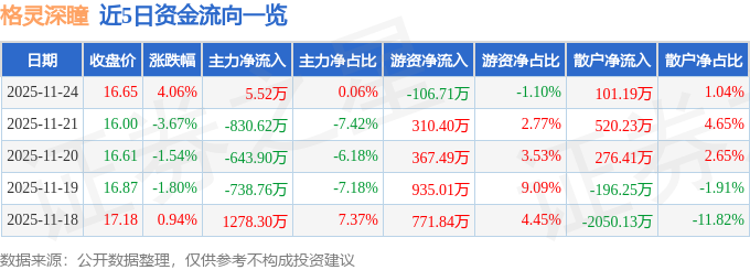 证券之星消息,截至2025年11月24日收盘,格灵深瞳(688207)报收于16.65元,上涨4.06%,换手率2.3%,成交量5.94万手,成交额9689.89万元。