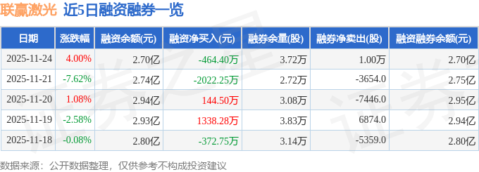 证券之星消息,截至2025年11月24日收盘,联赢激光(688518)报收于24.2元,上涨4.0%,换手率3.51%,成交量11.97万手,成交额2.86亿元。