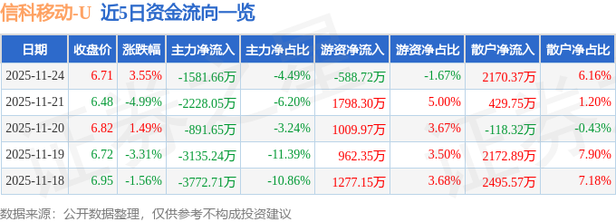 证券之星消息,截至2025年11月24日收盘,信科移动(688387)报收于6.71元,上涨3.55%,换手率2.61%,成交量52.61万手,成交额3.52亿元。