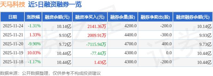 天马科技融资融券信息显示,融资方面,当日融资买入7396.36万元,融资偿还5255.0万元,融资净买入2141.36万元。融券方面,融券卖出0.0股,融券偿还200.0股,融券余量4200.0股,融券余额6.31万元。融资融券余额10.14亿元。