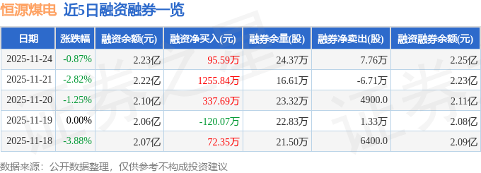 恒源煤电融资融券信息显示,融资方面,当日融资买入445.53万元,融资偿还349.94万元,融资净买入95.59万元,连续3日净买入累计1689.13万元。融券方面,融券卖出7.79万股,融券偿还300.0股,融券余量24.37万股,融券余额166.45万元。融资融券余额2.25亿元。