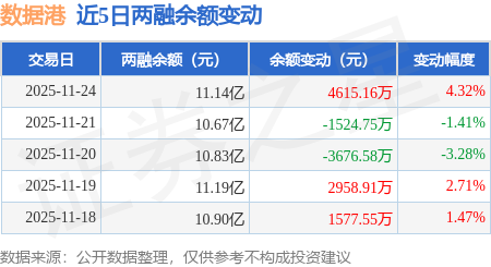 证券之星消息,11月24日,数据港(603881)融资买入3.31亿元,融资偿还2.86亿元,融资净买入4570.48万元,融资余额11.08亿元。