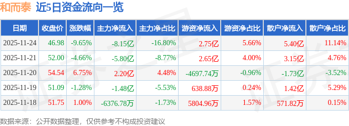 证券之星消息,截至2025年11月24日收盘,和而泰(002402)报收于46.98元,下跌9.65%,换手率12.5%,成交量100.73万手,成交额48.52亿元。