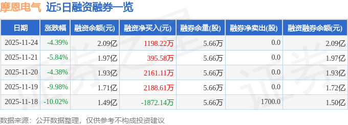 证券之星消息,截至2025年11月24日收盘,摩恩电气(002451)报收于10.02元,下跌4.39%,换手率13.79%,成交量60.54万手,成交额6.13亿元。