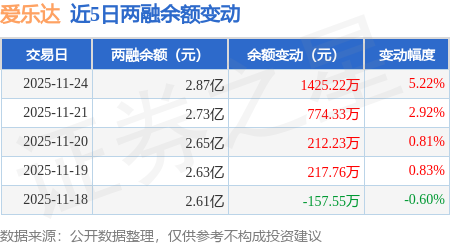 证券之星消息,11月24日,爱乐达(300696)融资买入7167.52万元,融资偿还5743.13万元,融资净买入1424.39万元,融资余额2.87亿元,近3个交易日已连续净买入累计2404.35万元,近20个交易日中有11个交易日出现融资净买入。