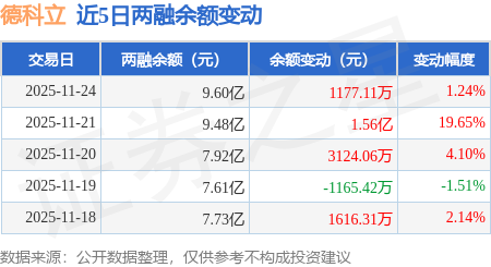 证券之星消息,11月24日,德科立(688205)融资买入3.55亿元,融资偿还3.43亿元,融资净买入1177.11万元,融资余额9.6亿元,近3个交易日已连续净买入累计1.99亿元。