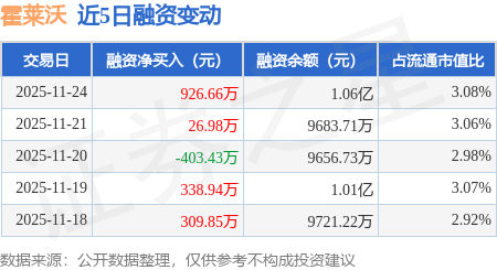 证券之星消息,11月24日,霍莱沃(688682)融资买入1591.54万元,融资偿还664.88万元,融资净买入926.66万元,融资余额1.06亿元,近20个交易日中有11个交易日出现融资净买入。