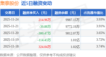 证券之星消息,11月24日,集泰股份(002909)融资买入1191.97万元,融资偿还977.01万元,融资净买入214.96万元,融资余额9987.15万元。