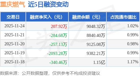 证券之星消息,11月24日,重庆燃气(600917)融资买入539.78万元,融资偿还331.86万元,融资净买入207.92万元,融资余额9048.32万元。