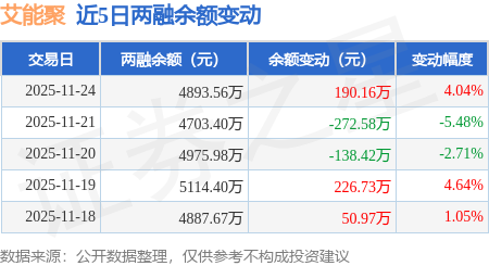 证券之星消息,11月24日,艾能聚(920770)融资买入410.18万元,融资偿还220.01万元,融资净买入190.16万元,融资余额4893.56万元。