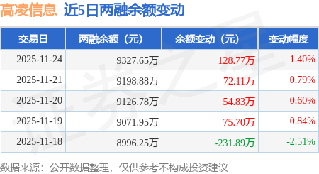 证券之星消息,11月24日,高凌信息(688175)融资买入641.72万元,融资偿还512.96万元,融资净买入128.77万元,融资余额9327.65万元,近3个交易日已连续净买入累计255.7万元,近20个交易日中有12个交易日出现融资净买入。