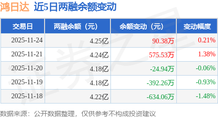 证券之星消息,11月24日,鸿日达(301285)融资买入668.63万元,融资偿还578.25万元,融资净买入90.38万元,融资余额4.25亿元,近20个交易日中有15个交易日出现融资净买入。