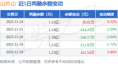 证券之星消息,11月24日,山外山(688410)融资买入697.35万元,融资偿还660.53万元,融资净买入36.81万元,融资余额1.15亿元。