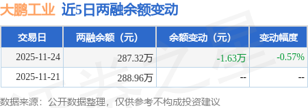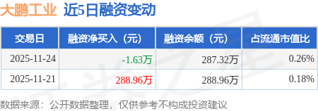证券之星消息,11月24日,大鹏工业(920091)融资买入34.31万元,融资偿还35.95万元,融资净卖出1.63万元,融资余额287.32万元。