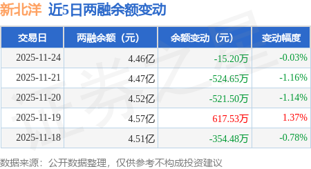 证券之星消息,11月24日,新北洋(002376)融资买入963.07万元,融资偿还978.36万元,融资净卖出15.3万元,融资余额4.46亿元。