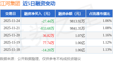 证券之星消息,11月24日,江河集团(601886)融资买入354.79万元,融资偿还382.23万元,融资净卖出27.44万元,融资余额9813.92万元。