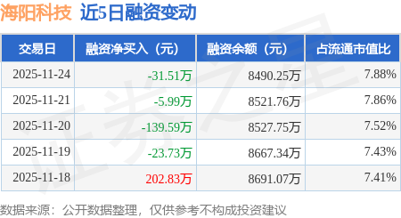 证券之星消息,11月24日,海阳科技(603382)融资买入221.86万元,融资偿还253.37万元,融资净卖出31.51万元,融资余额8490.25万元。