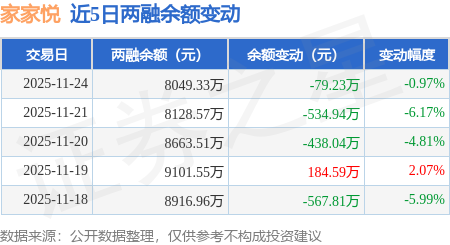 证券之星消息,11月24日,家家悦(603708)融资买入442.78万元,融资偿还522.48万元,融资净卖出79.7万元,融资余额8016.3万元。