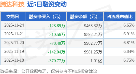证券之星消息,11月24日,腾达科技(001379)融资买入544.51万元,融资偿还673.4万元,融资净卖出128.89万元,融资余额9463.32万元。