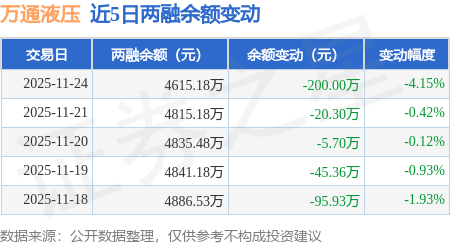 证券之星消息,11月24日,万通液压(920839)融资买入161.45万元,融资偿还361.46万元,融资净卖出200.0万元,融资余额4615.18万元。