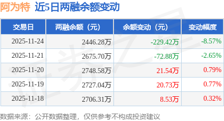 证券之星消息,11月24日,阿为特(920693)融资买入67.89万元,融资偿还297.31万元,融资净卖出229.42万元,融资余额2446.28万元。